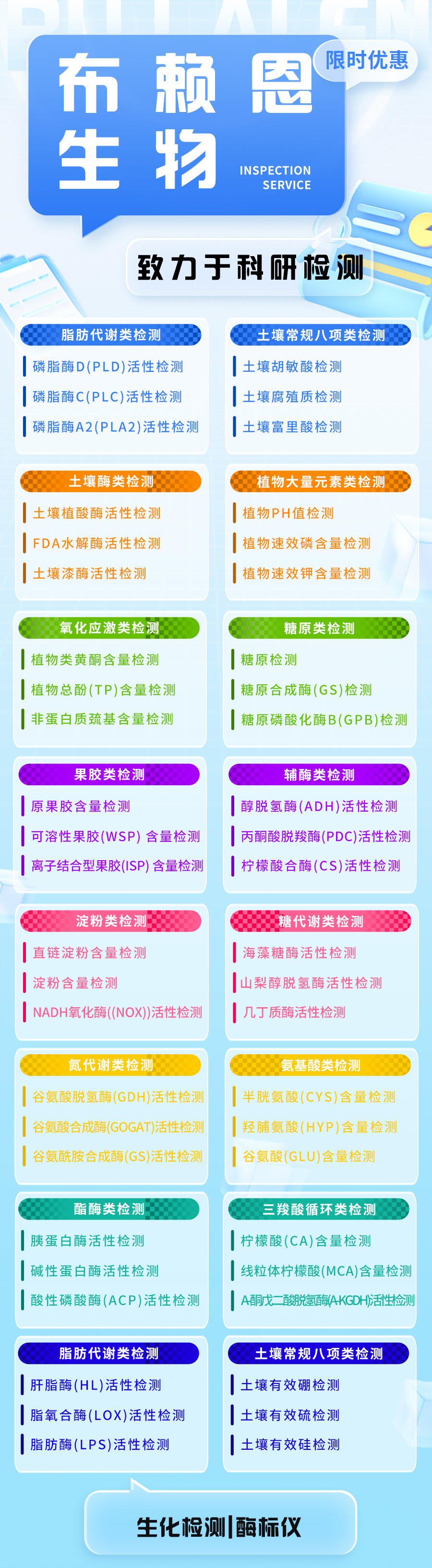 测试方法 :生化法/微量法/酶标仪/ICP-MS