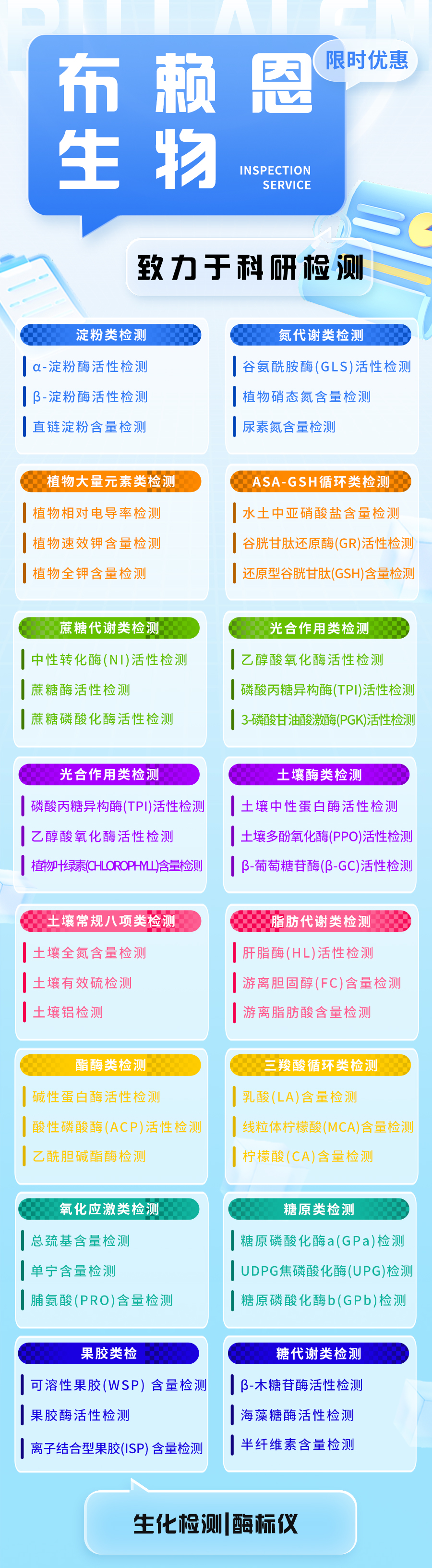 测试方法 :生化法/微量法/酶标仪/ICP-MS